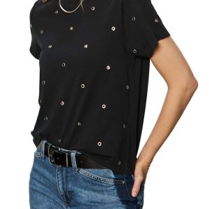 Faded Black Grommet Embellished Tee *XS-XL*