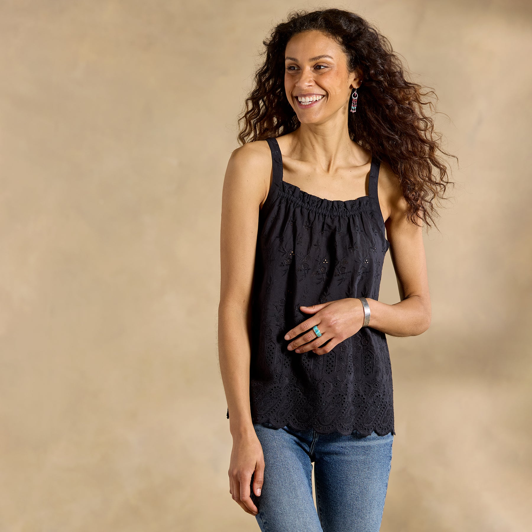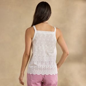 All-over eyelet makes Elsinore flirty and feminine in any weather—she’s equally pretty peeking out from under a denim jacket or all on her own! Elastic neckline with ruffle detail; scalloped hem. Hand wash. Imported. Exclusive. Sizes XS (0–2). S (4–6). M (8–10). L (12–14). XL (16–18). XXL (20–22). Approx. 24l