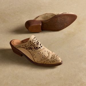 Lasercut flowers give these mules airiness. while the leather overlay and lined toe box add style and comfort. Sundance exclusive. Leather. Spain. Whole sizes 36-41. 36 (US 5.5). 37 (US 6.5). 38 (US 7.5). 39 (US 8.5). 40 (US 9.5). 41 (US 10).