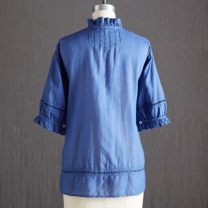 Detailed. hand embroidered florals grace our romantic top with ruffles at the neckline and sleeves. ladder lace and pleating detail. Button cuff. Cotton. Hand wash. Imported. Sizes XS (0-2). S (4-6). M (8-10). L (12-14). XL (16-18). Approx. 26l.