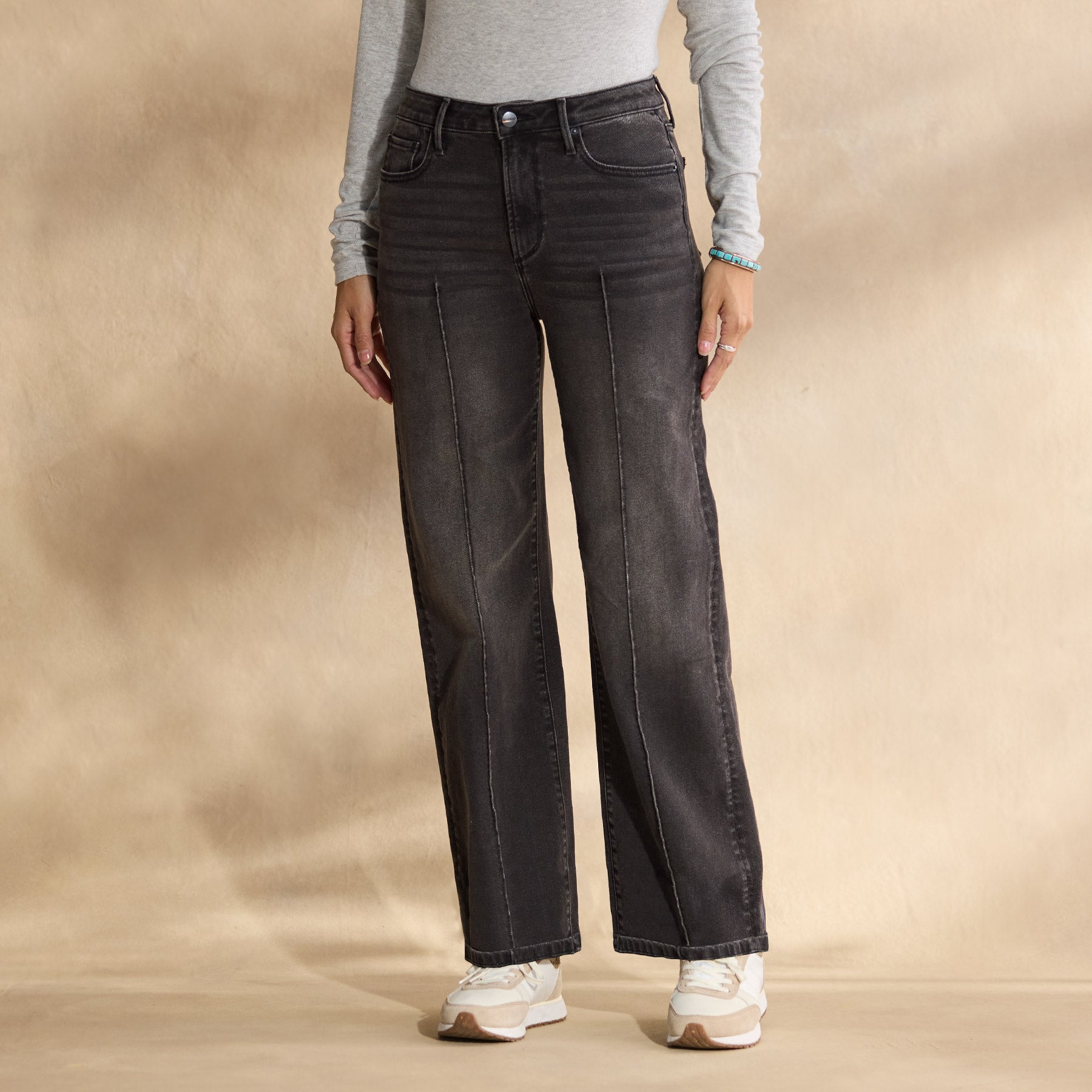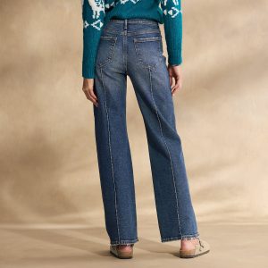 So stylish and comfortable. our unique jeans with seaming detail at the front legs. Five pocket. ankle-length straight leg with a high rise. Cotton/spandex. Machine wash. Imported. Sundance exclusive. Sizes 24-32. 27 or 29 inseam.